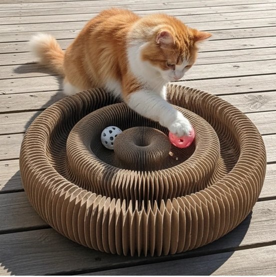 Składana konstrukcja umożliwia złożenie drapki w cztery różne konfiguracje, zapewniając różnorodne możliwości drapania dostosowane do potrzeb kota.